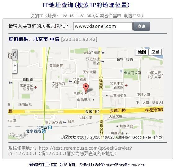 http://test.reremouse.com/IpSeekServlet?ip=127.0.0.1